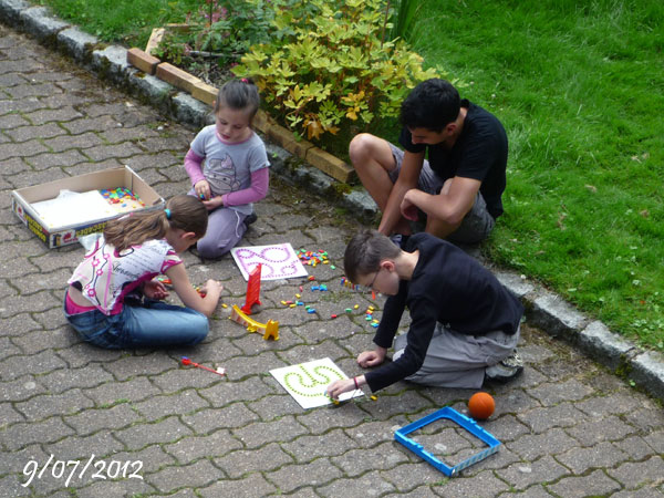 Matinée glandouille, boulangerie avec Aymeric sans les GP, visite d’une copine de Mémée Libellule avec ses 4 enfants, repas sur la terrasse – enfin – mais hélas pour certain avec carottes râpées en entrée, beurk mais bon ça passe quand même…