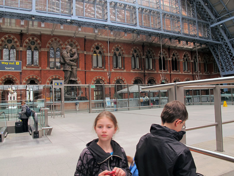 Départ dimanche 28 avril à 7h47 de la gare des Essarts-le-Roi pour les fargussiens et Jérémy. A Versailles Chantiers Lou-Ann nous rejoint à 8h16. Gare Montparnasse, métro et départ à 10h13 de la gare du Nord à Paris. Eurostar direction Londres, gare Saint-Pancras. Arrivée à Londres 11h39 local time.