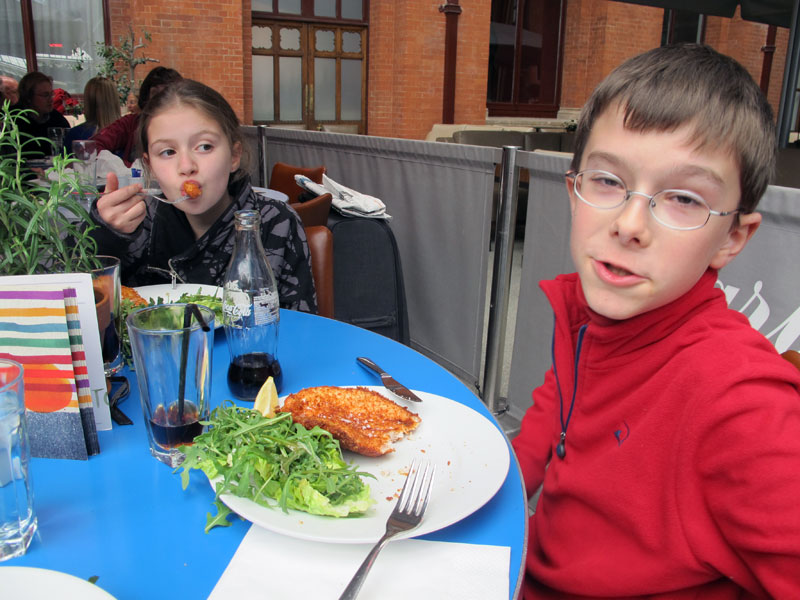 - Repas italien, galerie de la gare St Pancras, sous les « nuages » et à côté des voyageurs amoureux.