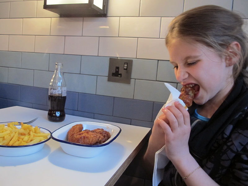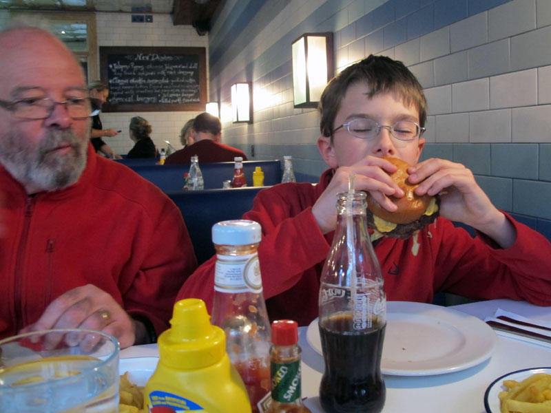 - Repas à côté de l’hôtel, petit restau sympa avec de la musique à donf, hamburger pour trois, chicken wings bien grillées pour Lou-Ann, coca en boisson (étonnant, non ?)