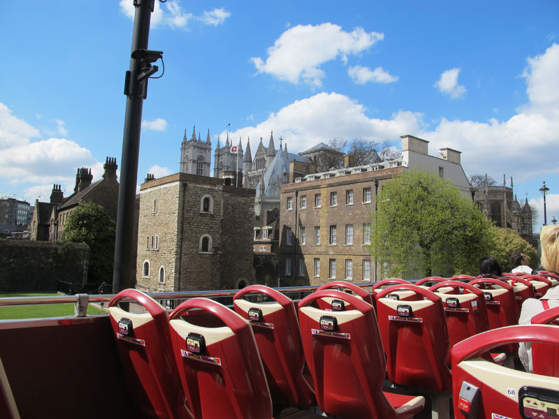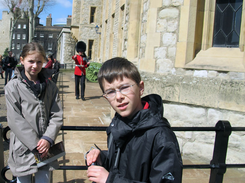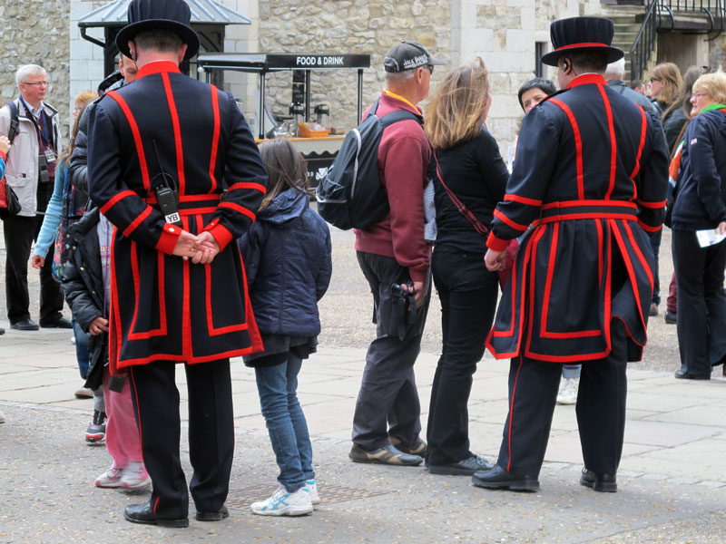 • Beau temps, ciel bleu, vent frisquet frisquet. Départ pour l’arrêt du Big Bus à Russel Square, ligne verte. Changement pour la ligne bleue direction Tower Bridge et la Tour de Londres. Visite de la Tour de Londres, salutations aux corbeaux royaux, aux Beefeaters en costume, long tour sur les remparts, tour des prisonniers (graffitis), tour blanche, joyaux de la Reine depuis le tant attendu tapis roulant…
