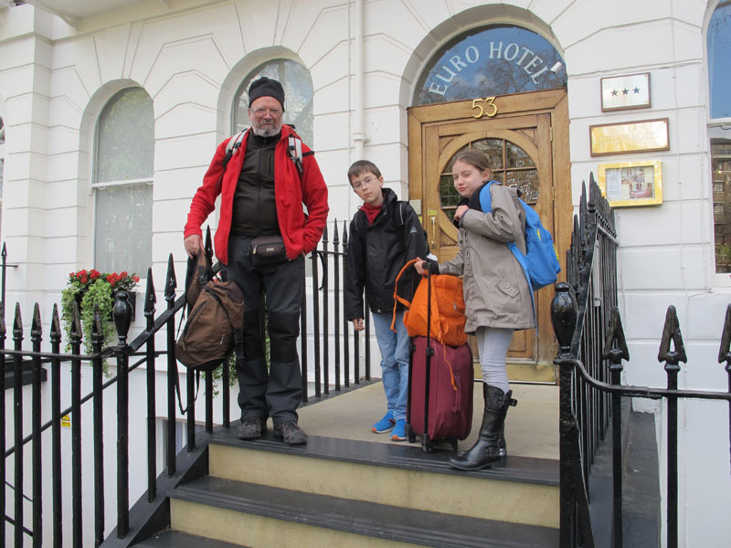 • Super petit-dej anglais, toasts, scrambled eggs, bacon, chocolat chaud, miel etc… Mémée teste l’oeuf mollet, beurk… Dépôt des bagages à la consigne de l’hôtel.
