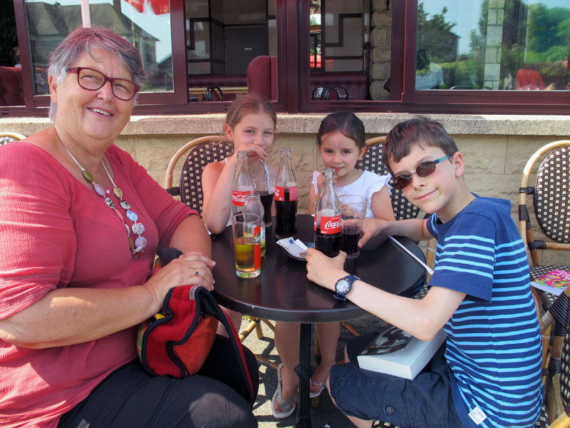Vendredi 19 : aller-retour « en ville » pour les grands qui organisent ensuite un course d’autonomisation pour Erin qui fait et décore des muffins, PiPierre se repose, fait chaud, Jérémy part, PiPierre mange chez des copains, en allant chercher des salades, les femmes qui restent se font une halte dessert à Cernay.
